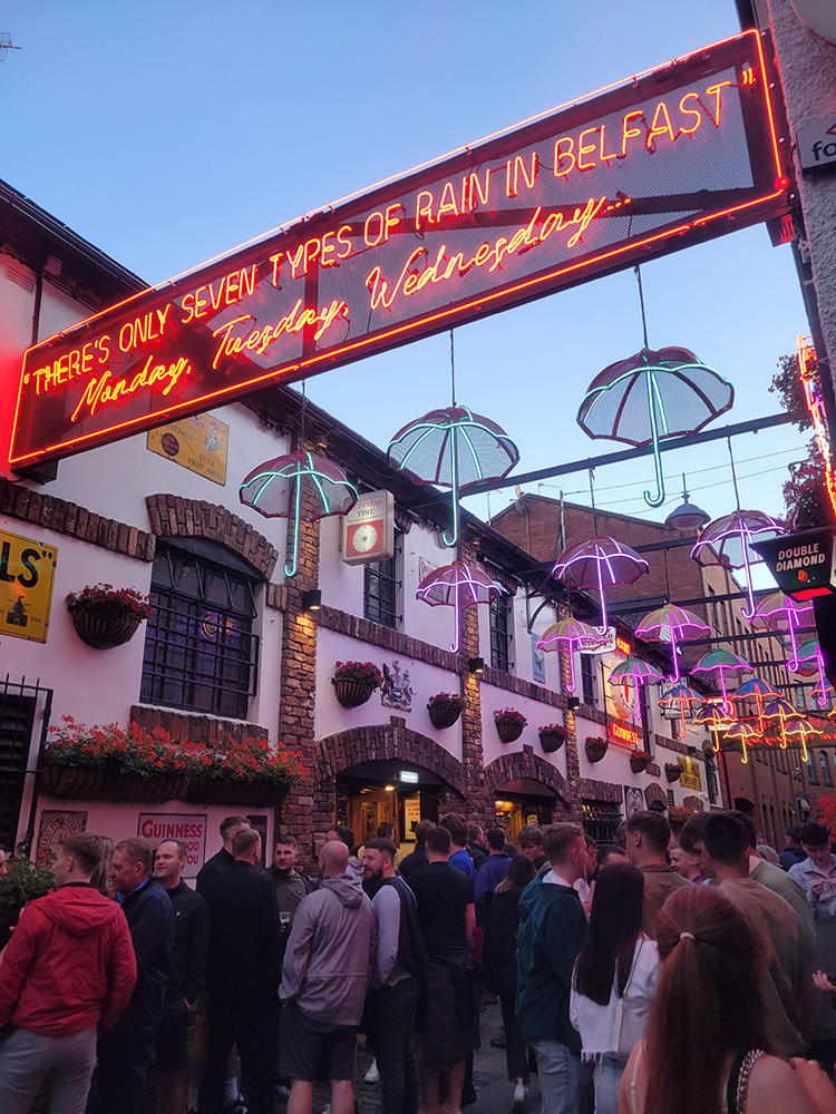 "We crossed the Carrick-a-Rede rope bridge and got an incredible view of the Irish coast on the other side along with faint glimpses of Scotland off across the shore. After that we took off for the Giant’s Causeway. This had to be the most intriguing place I’ve been out of all my travels prior to this trip. It was such an enriching experience to see one of the wonders of the world.... While there are many fun things to do and experience in Ireland, [touring Crumlin Road Gaol, a Belfast prison] reminded us of the painful history that many Irish folk of the past experienced. The prison operated from over 150 years ago up until the 1990s. Across Belfast we also got a glimpse at things like the peace wall, a remnant of The Troubles, another difficult and tumultuous time for Ireland."