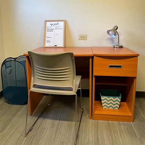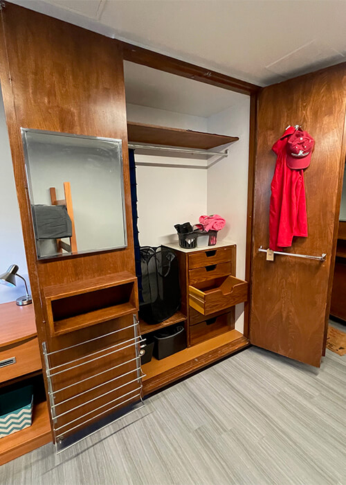 Each resident gets 1 bed, desk, nightstand, chair, and built-in wardrobe. A micro-fridge is also provided in every room. |