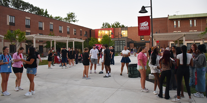St. Brigid Hall offers suite-style living with semi-private bathrooms and full-functioning kitchens on every floor. If you’d rather not prepare your own late-night snacks, the Valley Pizza Co. is a short walk away. Right outside, you can enjoy our newly renovated outdoor spaces that offer plenty of spots to relax, eat, or study!